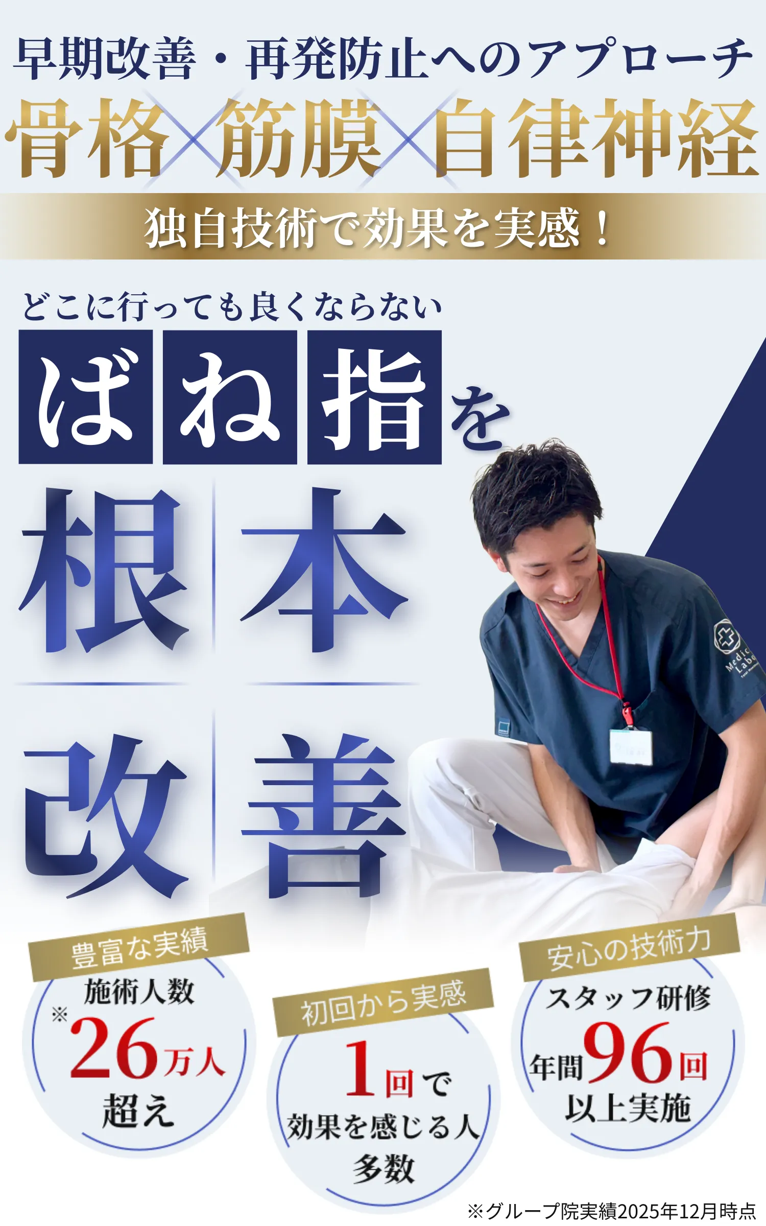 骨格・筋膜・自律神経への3つのアプローチにより施術効果が出やすく、根本原因の改善や再発防止へと導きます。